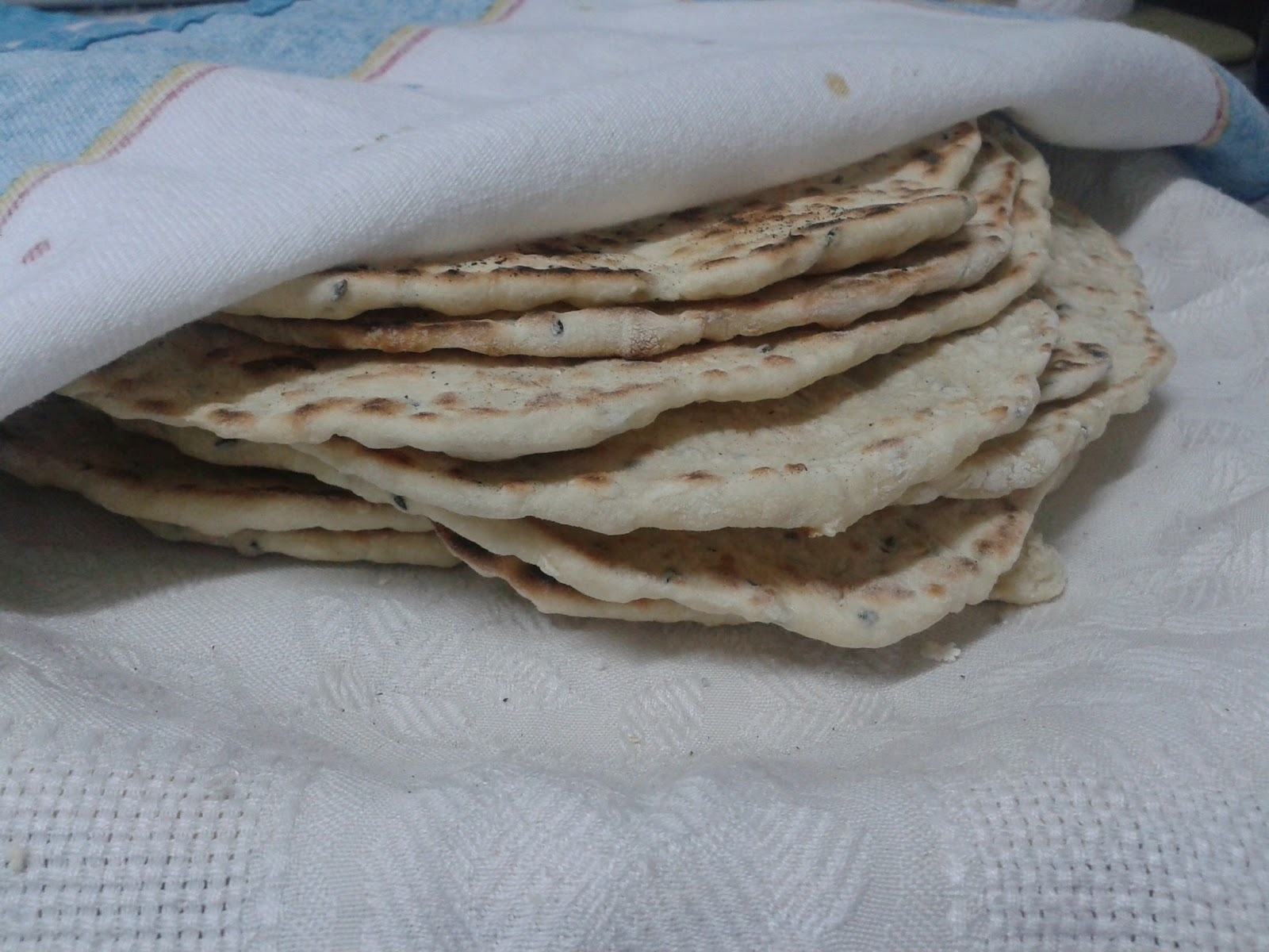 Hoy vuelvo con otra receta de pan saj, fácil de hacer y estupendo para tomar con el hummus (podéis ver la receta aquí), o falafel, o pollo, o mozzarella, tomate y especias... vamos, que da mucho juego.